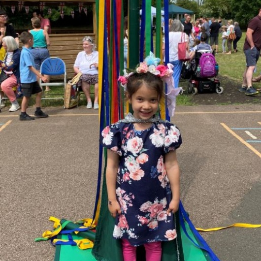 As a tradition dating back generations, South Kilworth Primary has always celebrated the arrival of Spring with a school fair, May Pole dancing and the crowing of our own May Queen. Presented to the youngest girl in school, the crown and cape (which is over 40 years old) are placed on the girl, with her name added to the school records.